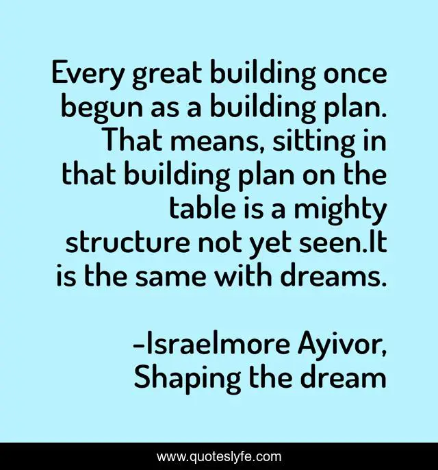 "Israelmore Ayivor, Shaping the dream Quotes." Quoteslyfe.com, 2025. Sat. 06 Dec. 2025. <https://www.quoteslyfe.com/quote/Every-great-building-once-begun-as-a-129617>.