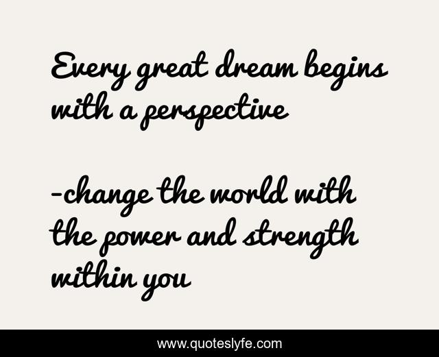 "change the world with the power and strength within you Quotes." Quoteslyfe.com, 2025. Sat. 06 Dec. 2025. <https://www.quoteslyfe.com/quote/Every-great-dream-begins-with-a-perspective-20625>.