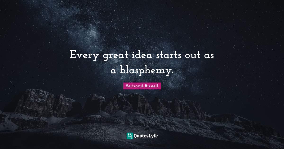 This page presents the quote "Every great idea starts out as a blasphemy.". Author of this quote is Bertrand Russell. This quote is about great idea, blasphemy, ideas,.