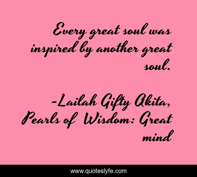 "Lailah Gifty Akita, Pearls of Wisdom: Great mind Quotes." Quoteslyfe.com, 2025. Sat. 06 Dec. 2025. <https://www.quoteslyfe.com/quote/Every-great-soul-was-inspired-by-another-63641>.