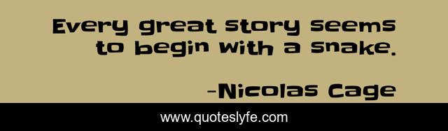 This page presents the quote "Every great story seems to begin with a snake.". Author of this quote is Nicolas Cage. This quote is about story, seems, snake,.