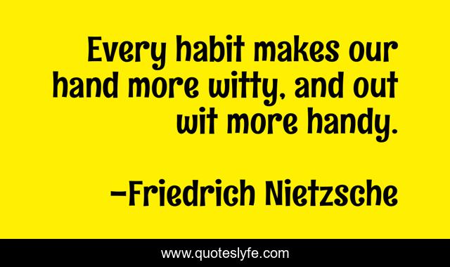 This page presents the quote "Every habit makes our hand more witty, and out wit more handy.". Author of this quote is Friedrich Nietzsche. This quote is about witty, handy, habit,.