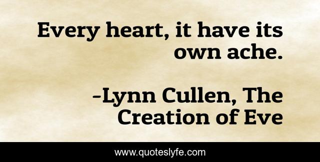 "Lynn Cullen, The Creation of Eve Quotes." Quoteslyfe.com, 2025. Fri. 05 Dec. 2025. <https://www.quoteslyfe.com/quote/Every-heart-it-have-its-own-ache-248049>.