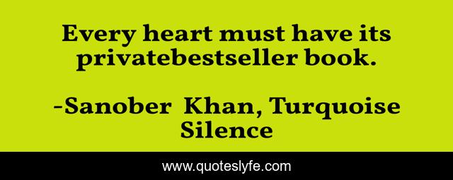 This page presents the quote "Every heart must have its privatebestseller book.". Author of this quote is Sanober Khan, Turquoise Silence. This quote is about heart, individuality, poetry, private, bestseller, books, stories,.