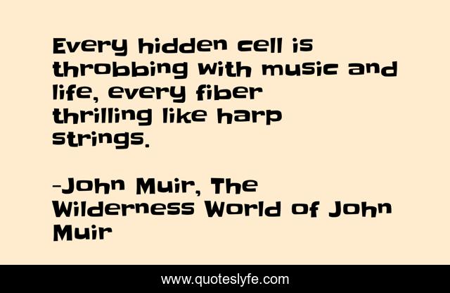 This page presents the quote "Every hidden cell is throbbing with music and life, every fiber thrilling like harp strings.". Author of this quote is John Muir, The Wilderness World of John Muir. This quote is about life, fiber, harp-strings, cell, music, john-muir, throbbing, harp,.