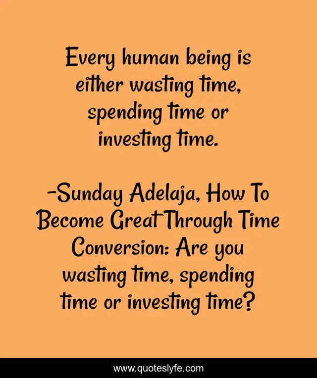 "Sunday Adelaja, How To Become Great Through Time Conversion: Are you wasting time, spending time or investing time? Quotes." Quoteslyfe.com, 2025. Mon. 08 Dec. 2025. <https://www.quoteslyfe.com/quote/Every-human-being-is-either-wasting-time-39302>.