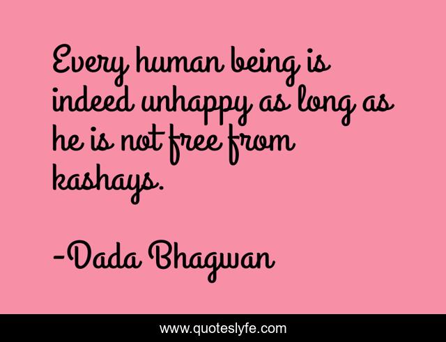 This page presents the quote "Every human being is indeed unhappy as long as he is not free from kashays.". Author of this quote is Dada Bhagwan. This quote is about spiritual, unhappy, anger, ego, human, deceit, human-being, pride, greed,.