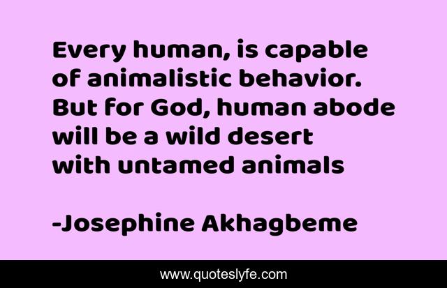 This page presents the quote "Every human, is capable of animalistic behavior. But for God, human abode will be a wild desert with untamed animals". Author of this quote is Josephine Akhagbeme. .