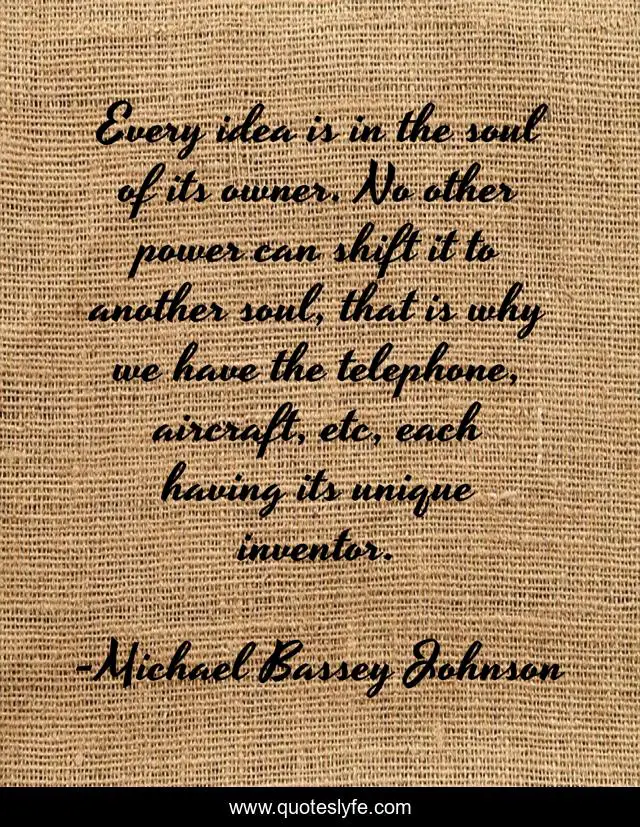 "Michael Bassey Johnson Quotes." Quoteslyfe.com, 2025. Sun. 07 Dec. 2025. <https://www.quoteslyfe.com/quote/Every-idea-is-in-the-soul-of-124236>.