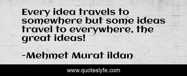 This page presents the quote "Every idea travels to somewhere but some ideas travel to everywhere, the great ideas!". Author of this quote is Mehmet Murat ildan. This quote is about turkish, great-ideas, ideas, idea, everywhere, murat-ildan,.
