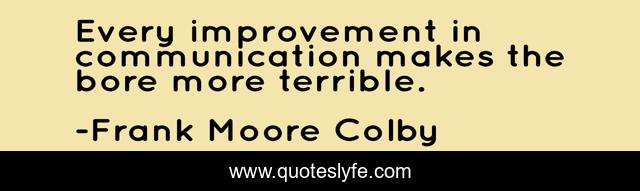 This page presents the quote "Every improvement in communication makes the bore more terrible.". Author of this quote is Frank Moore Colby. This quote is about angst, communication,.