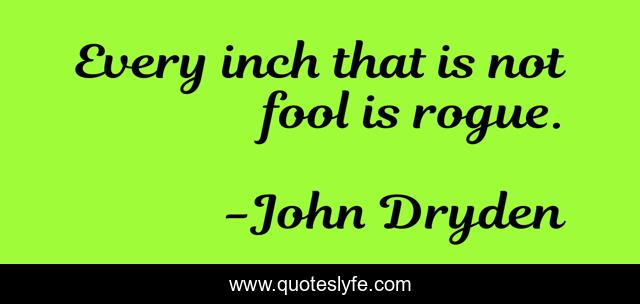 This page presents the quote "Every inch that is not fool is rogue.". Author of this quote is John Dryden. This quote is about fools, foolishness,.