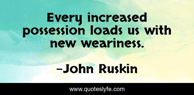This page presents the quote "Every increased possession loads us with new weariness.". Author of this quote is John Ruskin. .
