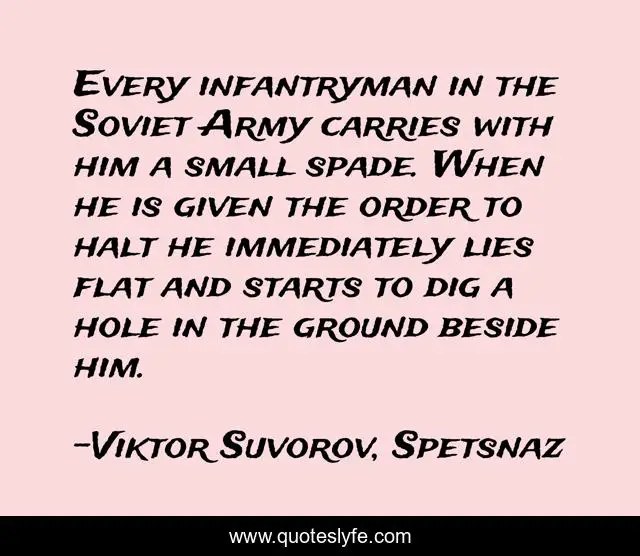"Viktor Suvorov, Spetsnaz Quotes." Quoteslyfe.com, 2025. Fri. 05 Dec. 2025. <https://www.quoteslyfe.com/quote/Every-infantryman-in-the-Soviet-Army-carries-237169>.