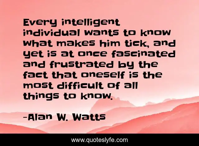 This page presents the quote "Every intelligent individual wants to know what makes him tick, and yet is at once fascinated and frustrated by the fact that oneself is the most difficult of all things to know.". Author of this quote is Alan W. Watts. .