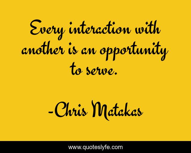 This page presents the quote "Every interaction with another is an opportunity to serve.". Author of this quote is Chris Matakas. .