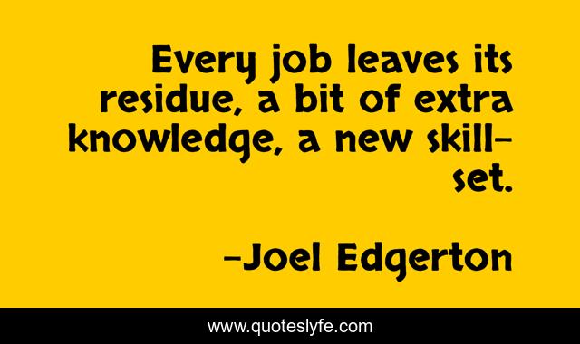 This page presents the quote "Every job leaves its residue, a bit of extra knowledge, a new skill-set.". Author of this quote is Joel Edgerton. This quote is about new, job, leaves,.