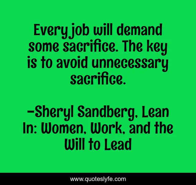 "Sheryl Sandberg, Lean In: Women, Work, and the Will to Lead Quotes." Quoteslyfe.com, 2025. Mon. 08 Dec. 2025. <https://www.quoteslyfe.com/quote/Every-job-will-demand-some-sacrifice-The-197871>.