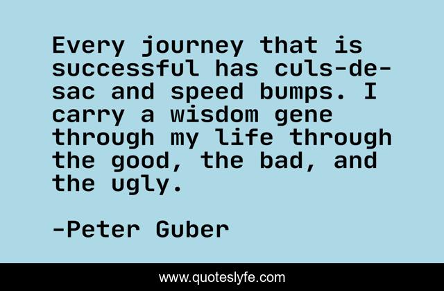 Every journey that is successful has culs-de-sac and speed bumps. I carry a wisdom gene through my life through the good, the bad, and the ugly.