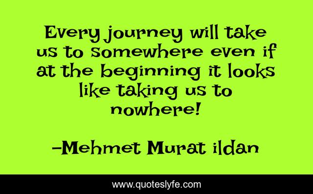 This page presents the quote "Every journey will take us to somewhere even if at the beginning it looks like taking us to nowhere!". Author of this quote is Mehmet Murat ildan. .