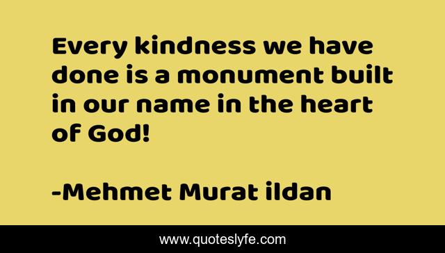 This page presents the quote "Every kindness we have done is a monument built in our name in the heart of God!". Author of this quote is Mehmet Murat ildan. .