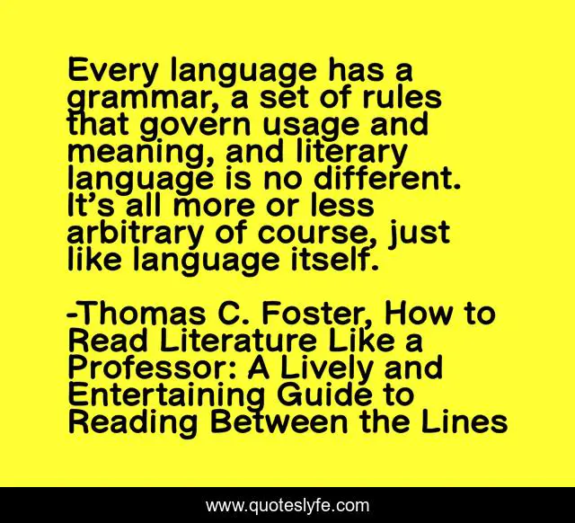 "Thomas C. Foster, How to Read Literature Like a Professor: A Lively and Entertaining Guide to Reading Between the Lines Quotes." Quoteslyfe.com, 2025. Fri. 05 Dec. 2025. <https://www.quoteslyfe.com/quote/Every-language-has-a-grammar-a-set-111988>.