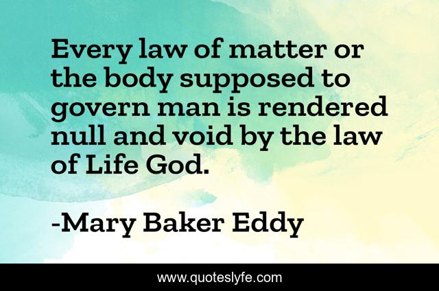 Every law of matter or the body supposed to govern man is rendered null and void by the law of Life God.