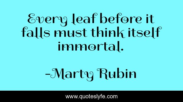 This page presents the quote "Every leaf before it falls must think itself immortal.". Author of this quote is Marty Rubin. This quote is about thought, immortality, delusion, mortality,.
