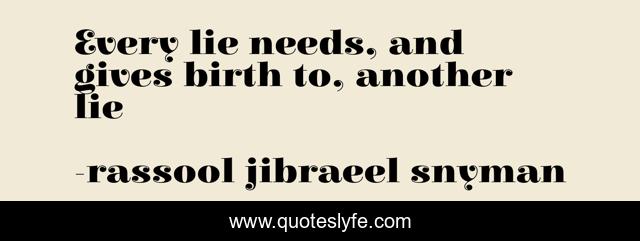 "rassool jibraeel snyman Quotes." Quoteslyfe.com, 2025. Sat. 06 Dec. 2025. <https://www.quoteslyfe.com/quote/Every-lie-needs-and-gives-birth-to-167662>.