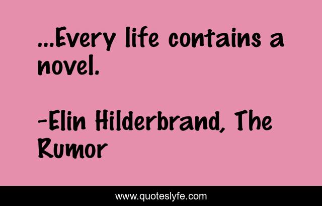 "Elin Hilderbrand, The Rumor Quotes." Quoteslyfe.com, 2025. Mon. 08 Dec. 2025. <https://www.quoteslyfe.com/quote/Every-life-contains-a-novel-43904>.