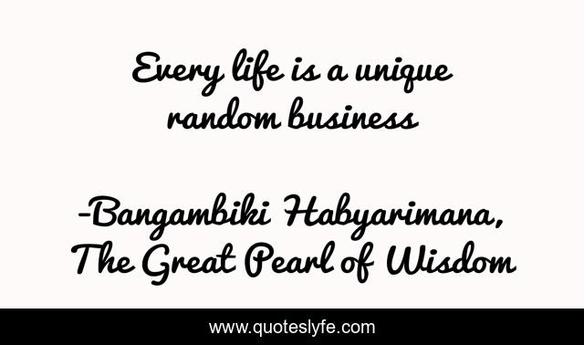 "Bangambiki Habyarimana, The Great Pearl of Wisdom Quotes." Quoteslyfe.com, 2025. Sat. 06 Dec. 2025. <https://www.quoteslyfe.com/quote/Every-life-is-a-unique-random-business-115945>.