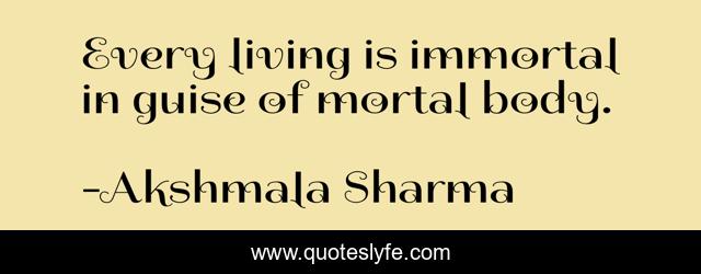 This page presents the quote "Every living is immortal in guise of mortal body.". Author of this quote is Akshmala Sharma. .