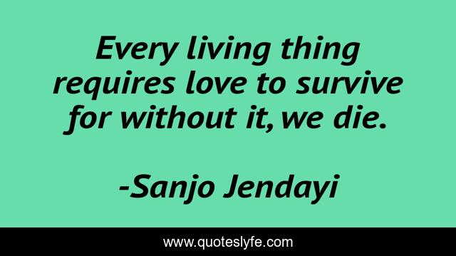 This page presents the quote "Every living thing requires love to survive for without it, we die.". Author of this quote is Sanjo Jendayi. This quote is about death, love, die, live, deserie-johnson, sanjo-jendayi, survive, affection,.