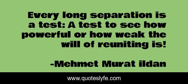 "Mehmet Murat ildan Quotes." Quoteslyfe.com, 2025. Fri. 05 Dec. 2025. <https://www.quoteslyfe.com/quote/Every-long-separation-is-a-test-A-220041>.