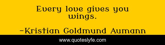 This page presents the quote "Every love gives you wings.". Author of this quote is Kristian Goldmund Aumann. This quote is about love, affection,.