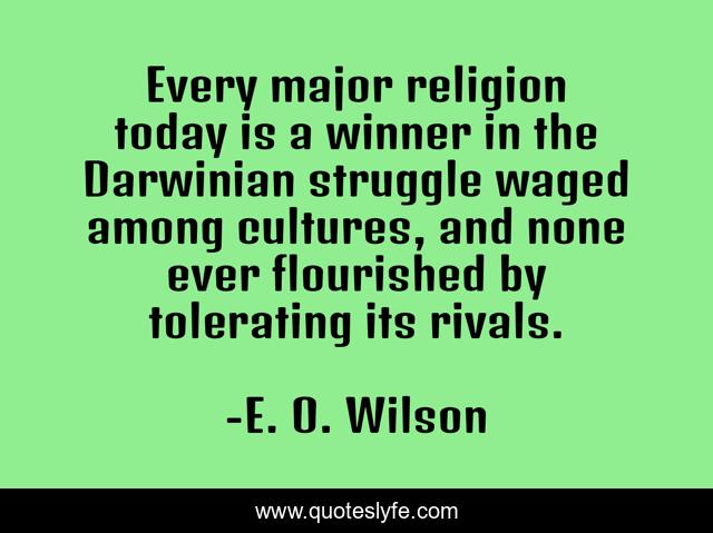 This page presents the quote "Every major religion today is a winner in the Darwinian struggle waged among cultures, and none ever flourished by tolerating its rivals.". Author of this quote is E. O. Wilson. This quote is about winner, struggle, today,.
