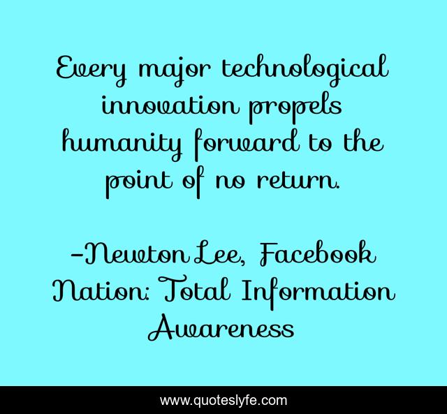 "Newton Lee, Facebook Nation: Total Information Awareness Quotes." Quoteslyfe.com, 2025. Mon. 08 Dec. 2025. <https://www.quoteslyfe.com/quote/Every-major-technological-innovation-propels-humanity-forward-214116>.