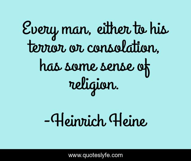 This page presents the quote "Every man, either to his terror or consolation, has some sense of religion.". Author of this quote is Heinrich Heine. This quote is about terror, man, sense,.