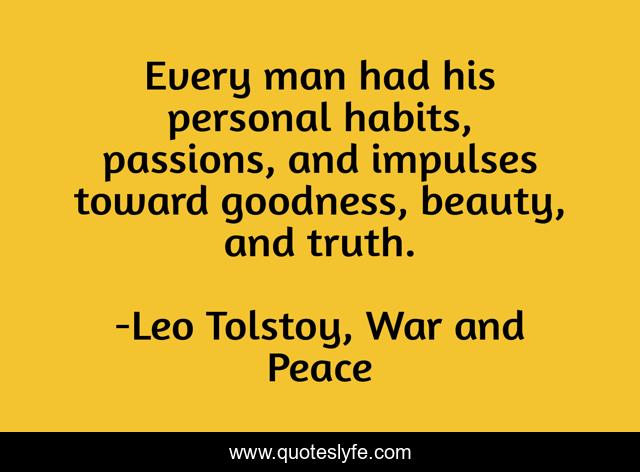 This page presents the quote "Every man had his personal habits, passions, and impulses toward goodness, beauty, and truth.". Author of this quote is Leo Tolstoy, War and Peace. This quote is about beauty, goodness, truth,.