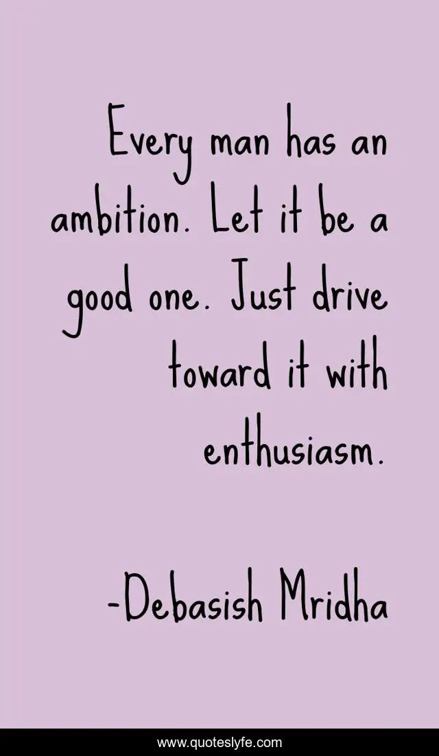 This page presents the quote "Every man has an ambition. Let it be a good one. Just drive toward it with enthusiasm.". Author of this quote is Debasish Mridha. This quote is about every-man-has-ambition, philosophy, debasish-mridha, quotes, debasish-mridha-md, inspirational, ambition, enthusiasm,.