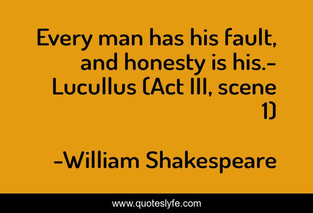 This page presents the quote "Every man has his fault, and honesty is his.- Lucullus (Act III, scene 1)". Author of this quote is William Shakespeare. This quote is about honesty, character-flaw,.