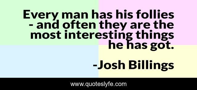 This page presents the quote "Every man has his follies - and often they are the most interesting things he has got.". Author of this quote is Josh Billings. This quote is about character, personality,.