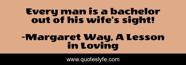 This page presents the quote "Every man is a bachelor out of his wife's sight!". Author of this quote is Margaret Way, A Lesson in Loving. This quote is about bachelor, marriage, husband, wife,.