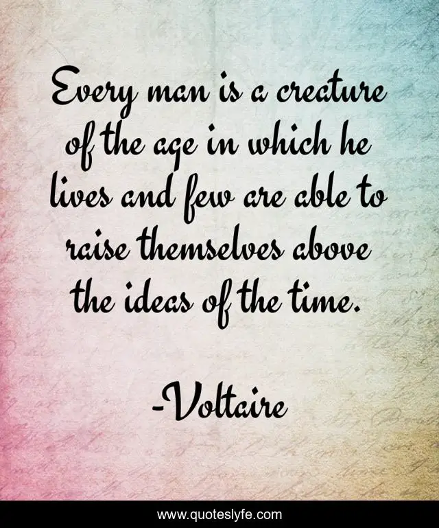 This page presents the quote "Every man is a creature of the age in which he lives and few are able to raise themselves above the ideas of the time.". Author of this quote is Voltaire. .