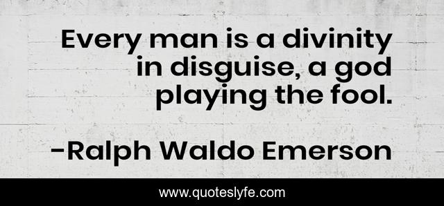 This page presents the quote "Every man is a divinity in disguise, a god playing the fool.". Author of this quote is Ralph Waldo Emerson. This quote is about fool, godlike, godly-reference, divine-self, divinity, god, godly, deities, godliness,.