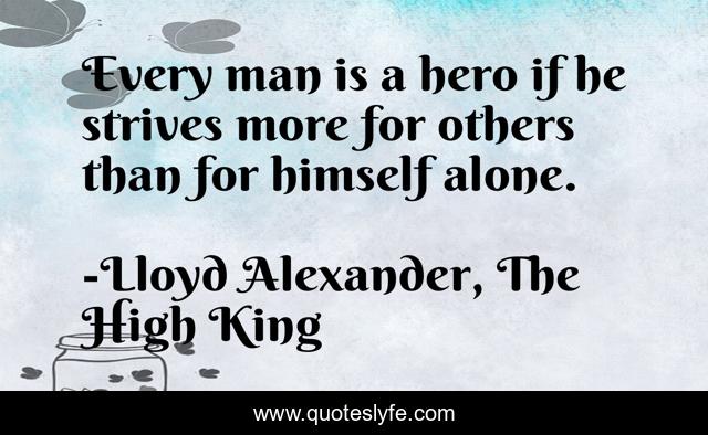 This page presents the quote "Every man is a hero if he strives more for others than for himself alone.". Author of this quote is Lloyd Alexander, The High King. This quote is about selflessness, heroism, good-deeds, hero,.