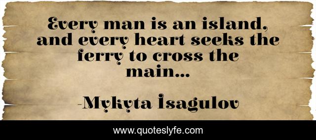 This page presents the quote "Every man is an island, and every heart seeks the ferry to cross the main...". Author of this quote is Mykyta Isagulov. This quote is about island, love, affection, ocean,.