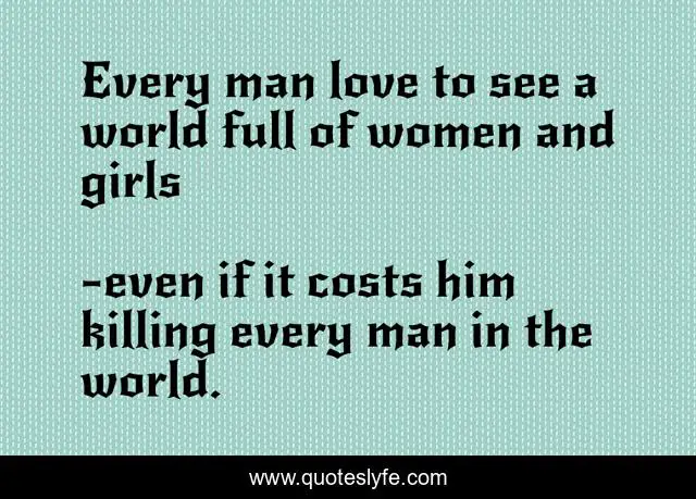 This page presents the quote "Every man love to see a world full of women and girls". Author of this quote is even if it costs him killing every man in the world.. .
