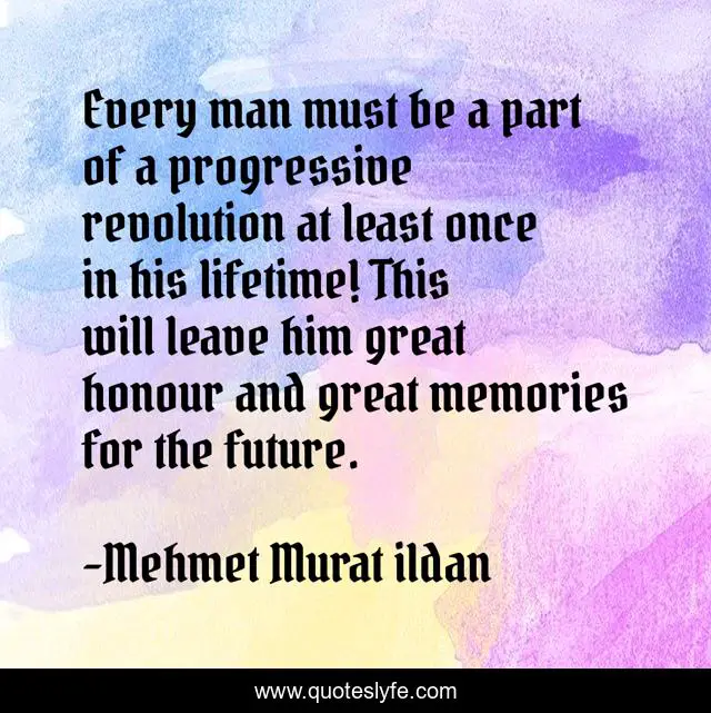 This page presents the quote "Every man must be a part of a progressive revolution at least once in his lifetime! This will leave him great honour and great memories for the future.". Author of this quote is Mehmet Murat ildan. .