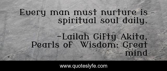 "Lailah Gifty Akita, Pearls of Wisdom: Great mind Quotes." Quoteslyfe.com, 2025. Tue. 09 Dec. 2025. <https://www.quoteslyfe.com/quote/Every-man-must-nurture-is-spiritual-soul-147702>.